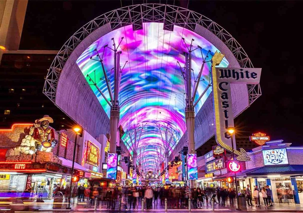 If Las Vegas Boulevard represents the modern, glitzy face of the city, Fremont Street gives you a glimpse into the past, offering a vibrant and historic experience. Fremont Street was Las Vegas’ first commercial street, and while it was once the beating heart of the city, it has since transformed into a massive entertainment hub. This area now features a wide variety of street performances, neon-lit shopping malls, and live music venues, bringing together the old-school charm of Las Vegas with modern-day flair. At night, Fremont Street becomes a visual spectacle with its “Fremont Street Light Show.” This 450-meter-long LED canopy comes alive with dazzling light displays, including music videos, historical images, and animated shows, drawing massive crowds nightly. The street’s atmosphere is further enriched by street performers, clowns, guitarists, and other artists, creating a vibrant, artsy atmosphere that encapsulates the spirit of the old Vegas mixed with a contemporary energy.